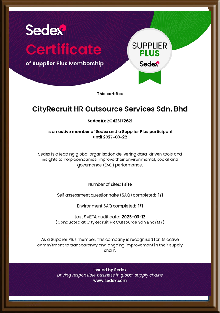Established on 30th September 2000, Agensi Pekerjaan CityRecruit Sdn Bhd or CityRecruit HR Outsource Services Sdn Bhd takes great pride in its contribution to the rapidly expanding field of workforce supply. As one of Malaysia’s most successful recruitment organizations, our recruitment consultants possess the expertise to deliver comprehensive and cost-effective staffing solutions across various industries.